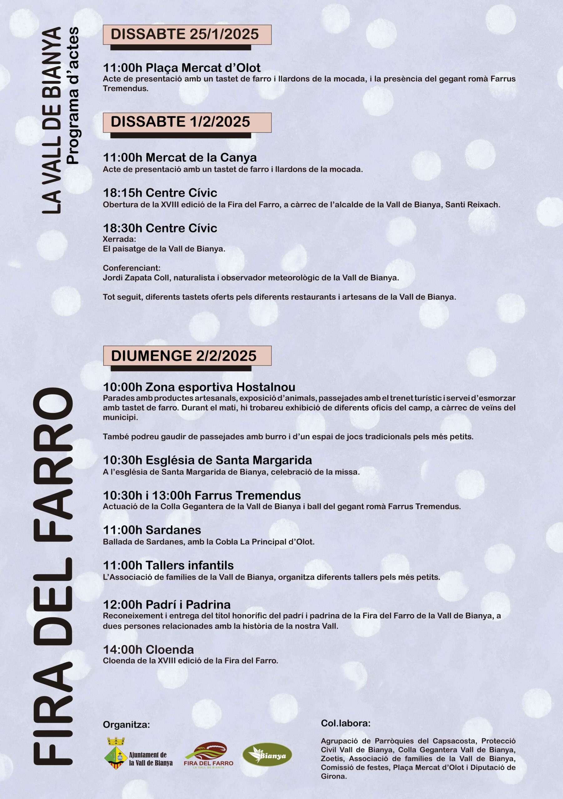 • La XVIII Fira del Farro de la Vall de Bianya, es portarà a terme els dies 1 i 2 de febrer de 2025.