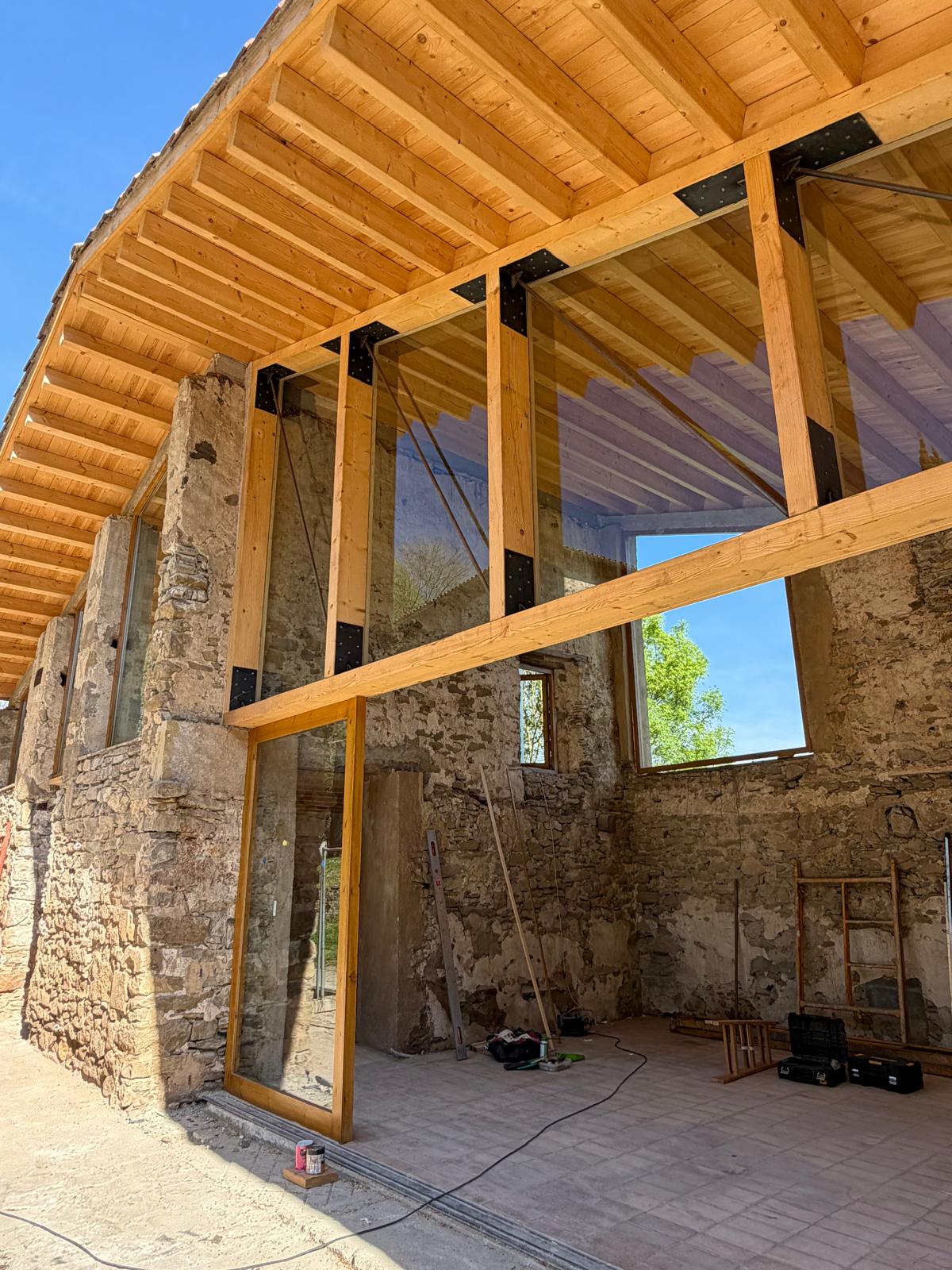 Les obres de rehabilitació de la cabanya del Mas Sobeies avancen a bon ritme i ja es troben en la seva fase final. Durant la darrera setmana s’ha completat la instal·lació d’una part important de la fusteria i els tancaments, un pas essencial per consolidar l’edifici i definir-ne l’aspecte definitiu. Paral·lelament, la zona de banys també ha experimentat un avenç notable, amb les instal·lacions i els acabats molt avançats.